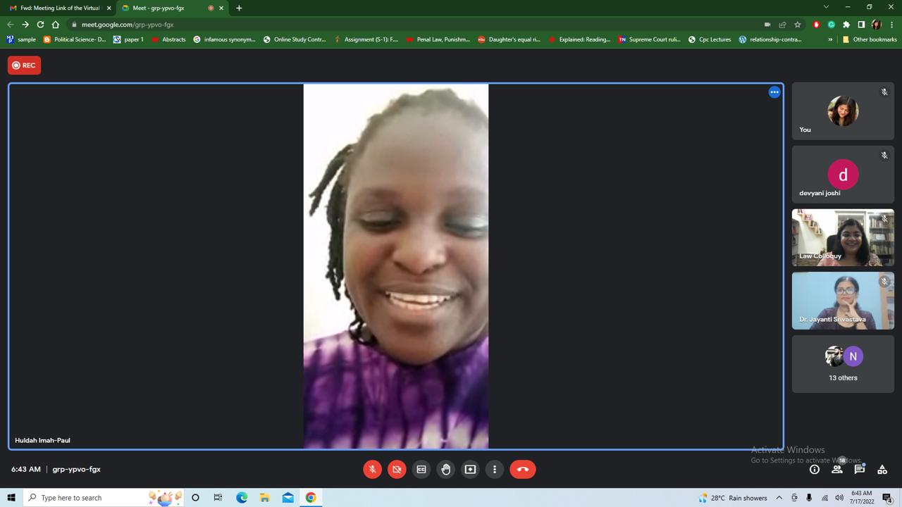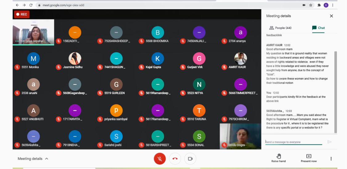 At the weninar on 'Online Bullyuing & Harrasment: Through the Lens of Law & Psychology'